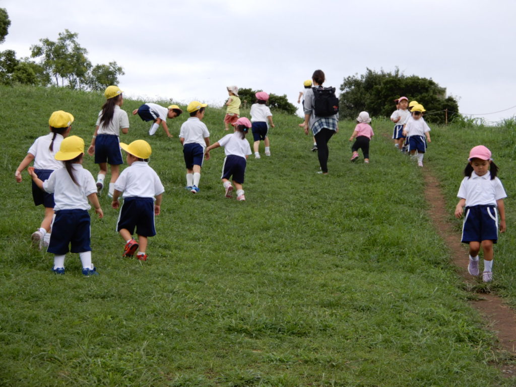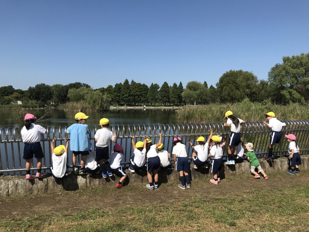 10月に入り、きんもくせいのあまい香りが漂ってくる季節になりました。秋晴れの良い天気が続き、やんちゃか村の子ども達は、連日戸外活動で秋を感じています。桜の木の葉が黄色く色づき秋風に吹かれチラチラ飛んでいく様を見たり、空高い青空の下で寝転んでみたり、お弁当を持って青空ランチに出かけました。ミニ運動会に向けてかけっこも頑張っています。