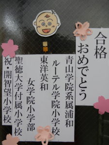 今年も11月に入り合格の便りが届きました。お勉強もたくさんしましたが、合格をいただく決め手はやはり日常の生活力だとしみじみ感じるようになりました。もちろんご両親の努力!またさまざまな要因が重なって、学校からご縁をいただけたのですが・・4月からの進学先がきまった年長組さん達は、気持ちまでもうすっかり一年生!発言も行動もすっかりかわってきました。お教室のお勉強は就学に向け読み書き・計算・字引き学習での写し取り・英語など様々な学習に取り組み始めました。