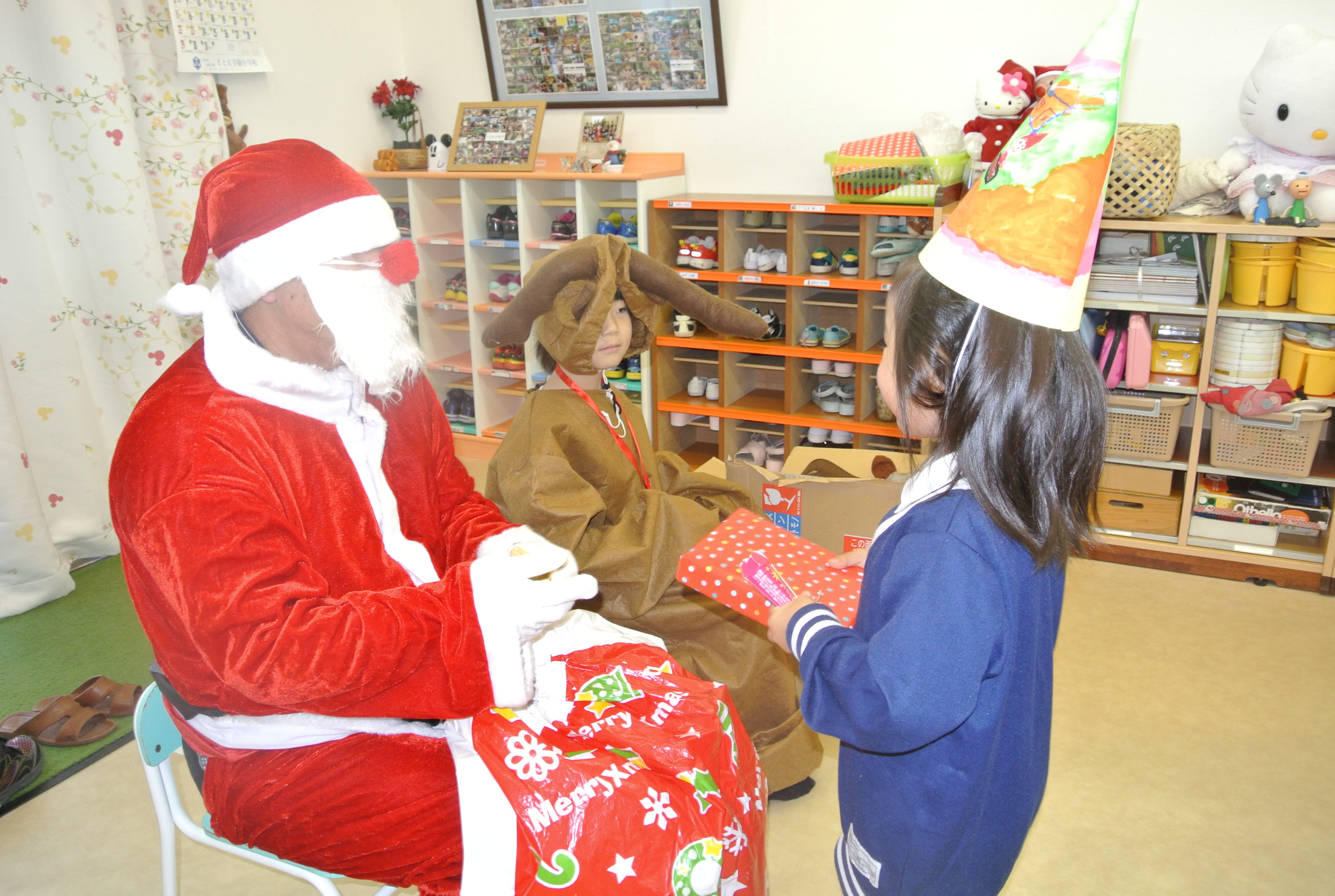 12月は25日のクリスマス会で終業式を終え、冬休みを迎えました。ちまたでは、胃腸炎で学級閉鎖になるほどの状況だったようですが、やんちゃかの子ども達は、終業式までお休みさん0で元気いっぱいに過ごせました。クリスマスには、サンタさんが来て、ゲームやくじ引きを楽しみプレゼントをいただき大喜び!でも、今年は「ぼく達ばかり、もらって・・お母様達に、ぼく達がサンタになってプレゼントをしよう!」と毎年作っている毛糸のマフラー・帽子をお父様やおばあちゃまに作ってプレゼントをしました。子ども達は、それぞれお家でどんなクリスマス・そしてお正月を過ごすのでしょう。。きっと笑顔いっぱいのお休みを過ごしていることでしょう。新学期は1月7日から、子ど
