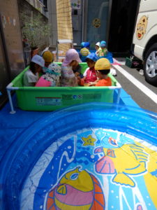 毎日、記録的な暑さが続いています。ヤンチャかっこ達は、今年は少し早めのプール開きで、連日にぎやかに水遊びを楽しんでいます。8月16日(木)は、恒例となりました夏祭りを予定しております。来年度入園を希望していらっしゃる方は、園の雰囲気をご覧いただく良い機会ですので、ぜひ、遊びにいらしてください。ご案内を希望の方は、ご連絡ください。